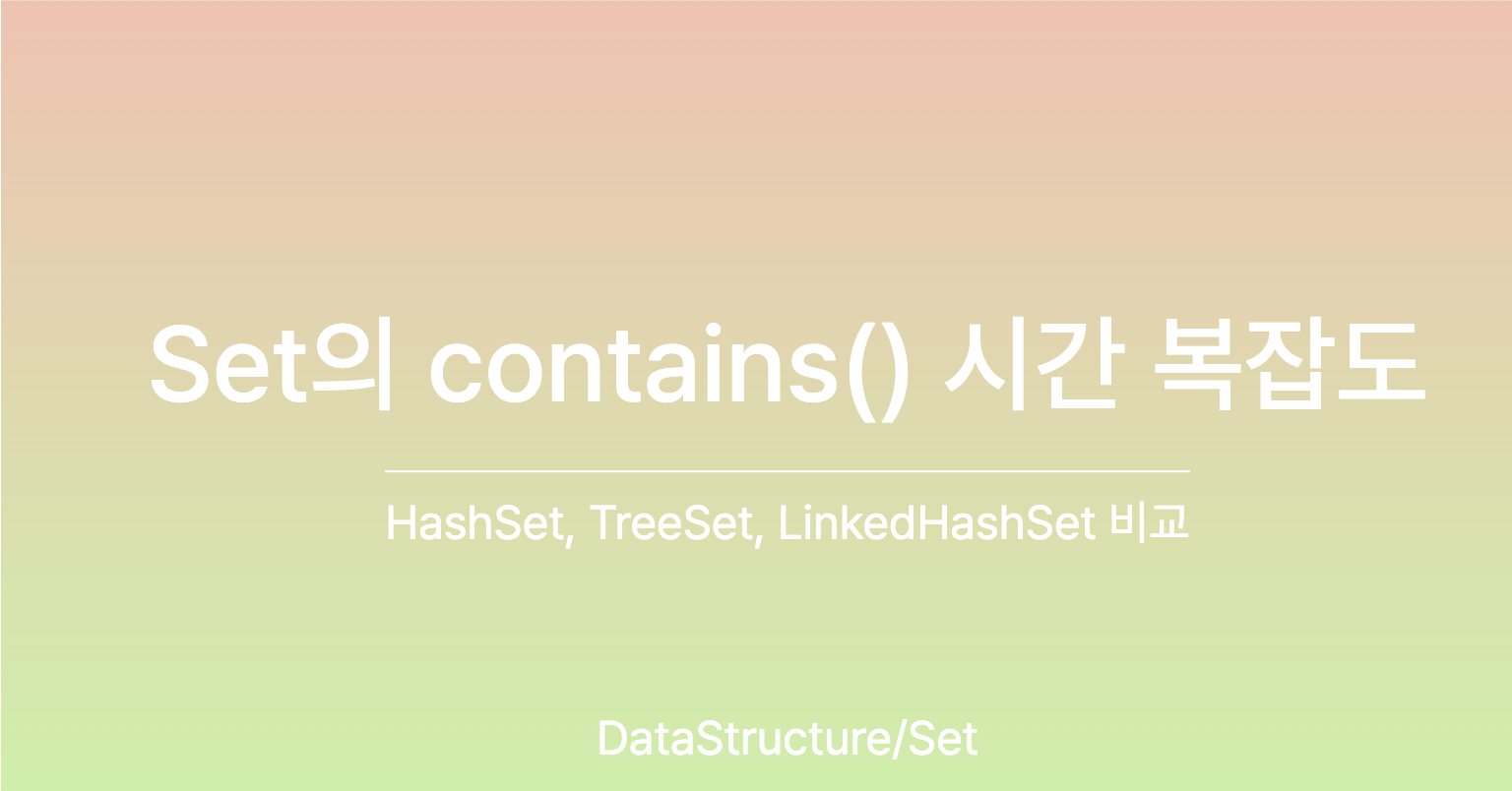 Set을 공부하던 중, Set.contains() 메서드의 시간 복잡도가 궁금했는데, Set의 자료구조 종류에 따라 contains()의 성능이 달라진다는 것을 알게 되었습니다.